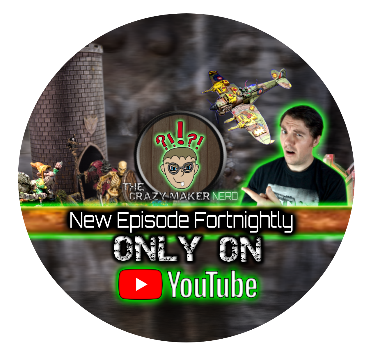 Click the circle to head to the Crazy Maker Nerd YouTube channel, where I can help you master high-impact hobbying. Together we will focus on cheap, efficient techniques to get your models from “pile of shame” onto the tabletop.
